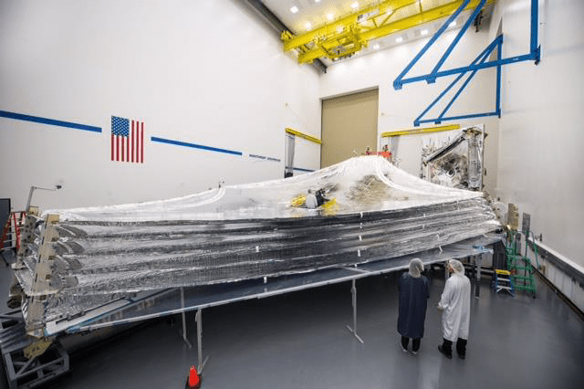 The five-layer tennis court-sized sun shield allows accurate and unobstructed measurement of low infrared signals.