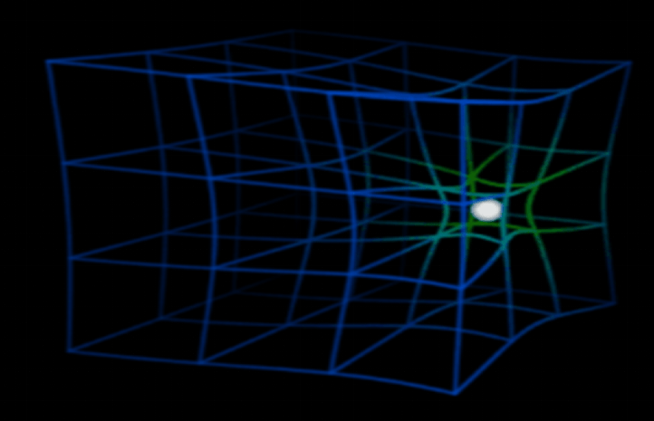 Think of space-time as a giant stretchy sheet. Every particle, even subatomic particles, make “valleys” of varying depth. More their mass, more broader and deeper their valley is; more their density, more deeper and narrower their valley is. This is called gravity, which pulls us into the valley. The stretchy sheet is in 3 Dimensions (for us), think of it as a foam box.
